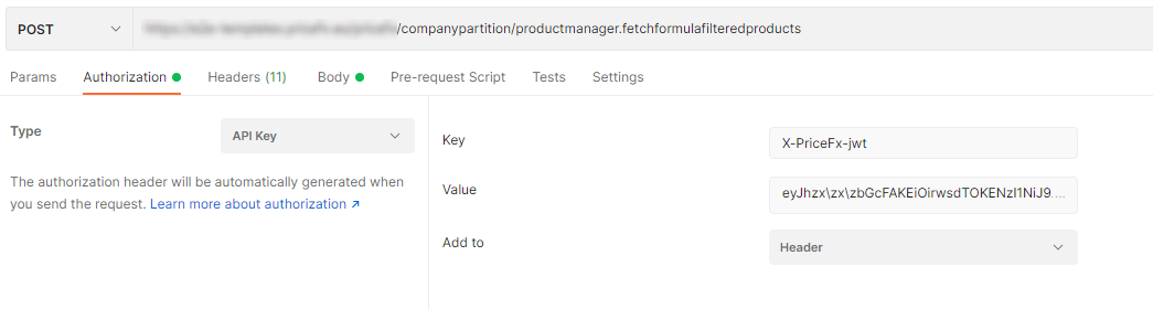 X-PriceFx-jwttoken. - Select the Header option in the Add to field.
